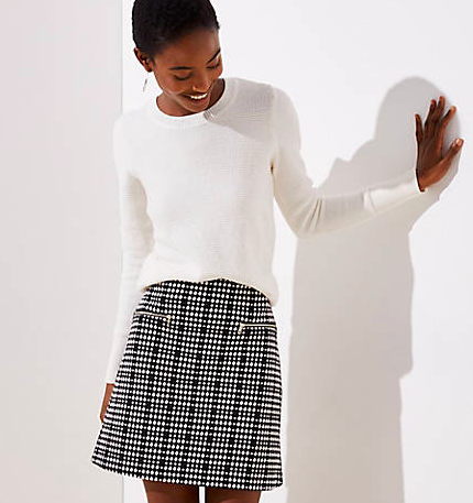 Loft is having a crazy sale right now but it's not going to last very long! This is the perfect opportunity to get high quality pieces at affordable prices! These faux fur slippers have been shared by tons of bloggers and are only $12! Perfect gift for someone or for yourself to keep your tootsies nice and warm :) This skirt is so cute and would go great with all the pretty greens and reds for the holidays! Okay...I'm literally obsessing over this reversible plaid poncho! So cute and I love that you can have a totally different look with the reversible side. And last, but not least this adorable pearl beret! So cute and would dress up any outfit :)