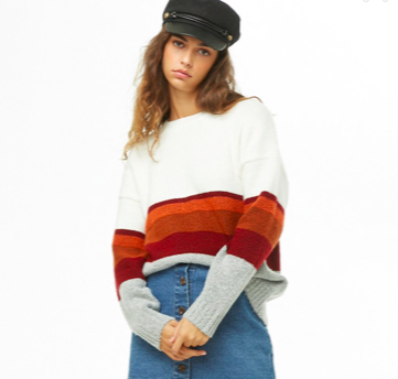 1. Striped Velvet Chenille V-Neck Sweater || 2. Ruched Sweater Dress || 3. Express One Eleven Modern Rib Off The Shoulder Tee || 4. Cable Knit Pom Beanie